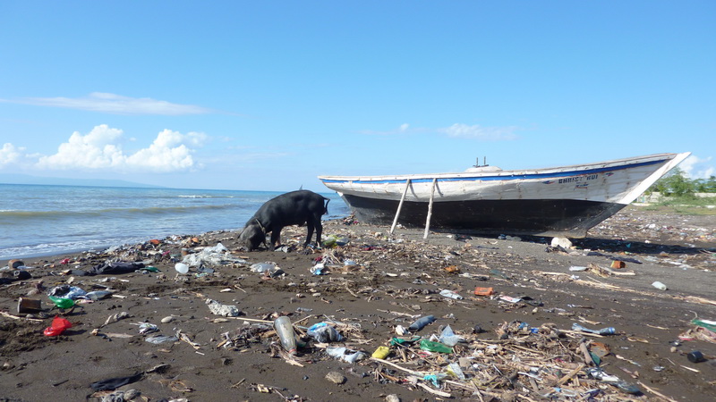Un des problèmes pour le tourisme balnéaire est la piètre qualité de l’eau dans le Golfe de la Gonave. En effet, on y retrouve, surtout près des côtes, de nombreux déchets macroscopiques, en particulier des matières plastiques, des coliformes et autres pathogènes, des hydrocarbures, des composés phosphatés et azotés et des métaux lourds (Desse, 2003 ; LAQUE, 2006 ; Le Brun, 2000 ; MDE et MPCE, 2004) (Figure 5). Cependant, les touristes semblent peu préoccupés de la propreté des plages et parcs, seuls 2 % mentionne cet aspect comme le plus important à améliorer, loin derrière les infrastructures hôtelières abordables et l’état des routes (Kolbe et al., 2013). Les changements climatiques représentent une menace pour certains sites touristiques balnéaires, vulnérables aux inondations et submersions et à long terme à l’augmentation du niveau de la mer. Certains sites touristiques planifiés se situent d’ailleurs dans des zones inondables.