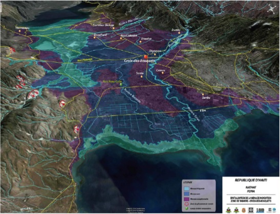 Le versant sud du Golfe de la Gonave est caractérisé par un développement périurbain intense, entrecoupé de parcelles agricoles en bord de mer (Figure 8). À l’ouest de Léogâne, la plaine côtière s’élargit et la vocation agricole maraichère y est plus forte (Desse, 2003). Léogane, construit dans un delta actif, est extrêmement vulnérable aux inondations (Figure 9).